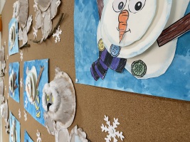 Arbeiten in 3D schmücken aktuell den Eingangsbereich der Schule. Hergestellt haben die Kunstwerke die Kinder des Schulkindergartens.